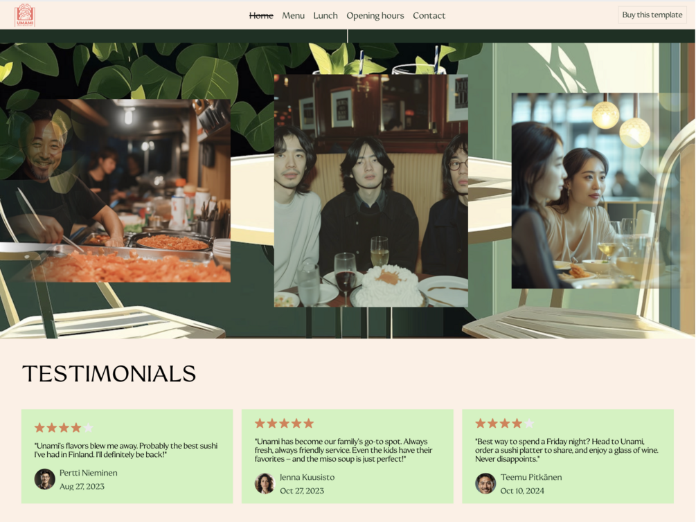Unami Asian is a bold and modern website template designed for restaurants that want to stand out with a professional and visually captivating online presence. Built entirely in Framer, it delivers smooth animations and dynamic elements for a premium user experience.